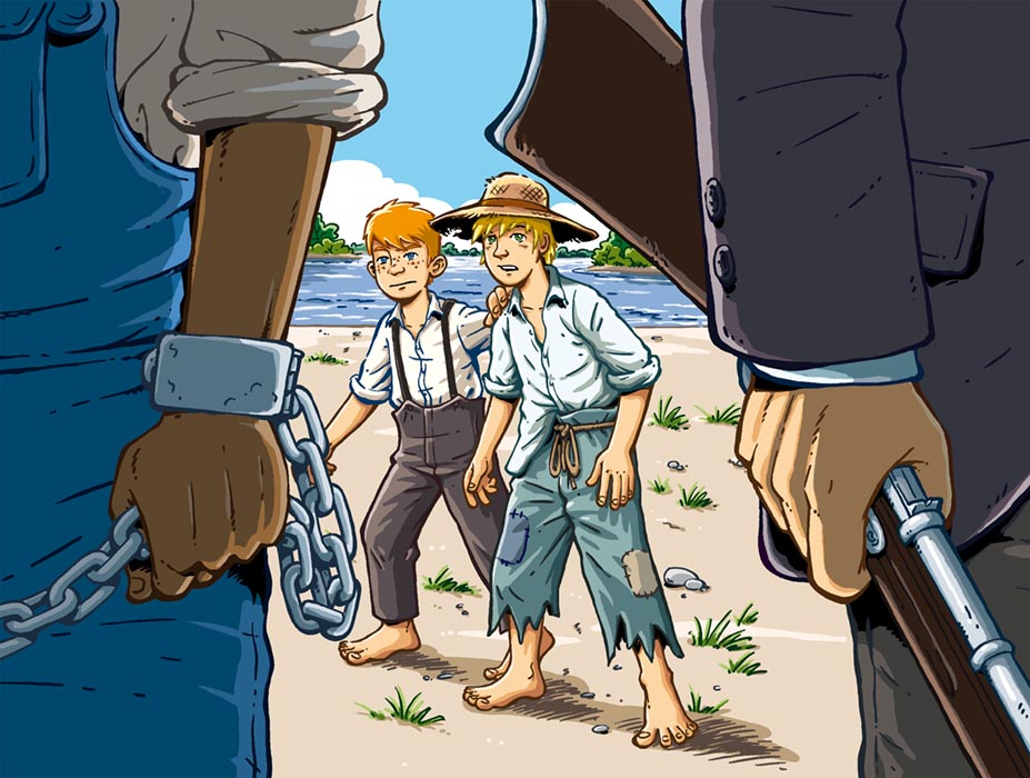 Illustration für eine Tom Sawyer & Huckleberry Finn Hörspiel-CD, 2010  -  © Udo Smialkowski