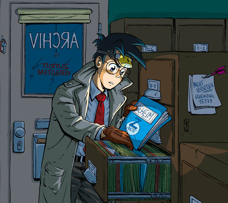 Illustration für eine Detektiv-Kopflampe, 2006  -  © Udo Smialkowski