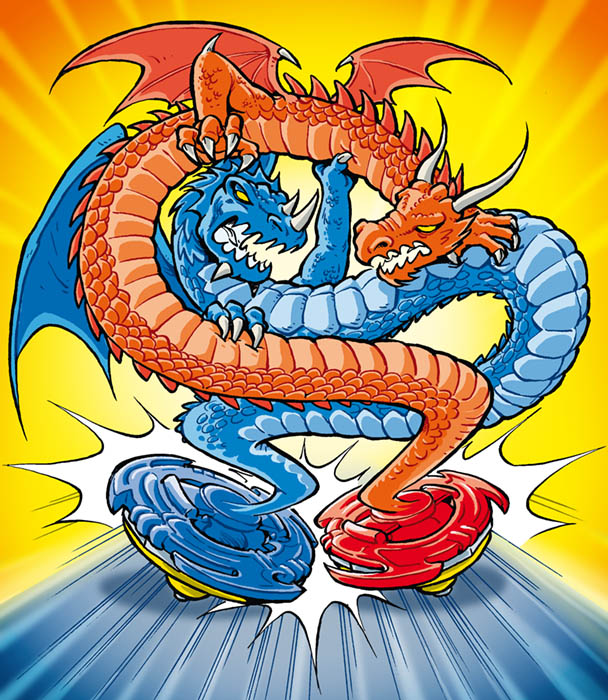 Splash-Illustration für eine Deluxe-Version der beliebten Kampf-Kreisel, 2004  -  © Udo Smialkowski